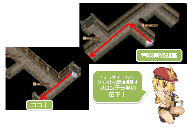 まず、メインとなる「テラグローリア」クエストの開始場所から。