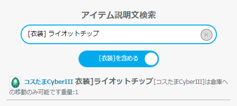 アイテム説明文に衣装装備の名前を入れるとどのコスたまに収録されているかがわかります。